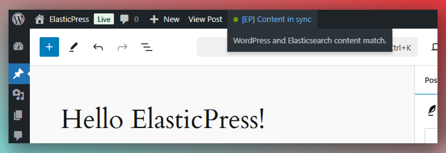 ElasticPress offers granular developer control over what content makes into the search index. Particularly among developers connecting third-party Elastic infrastructure with our open source plugin (instead of using our WordPress-optimized ElasticPress.io platform), the need to troubleshoot the search index can be common. With ElasticPress 5.2, it is easy to tell if content is in the search index thanks to a simple indicator in the WordPress admin menu bar.