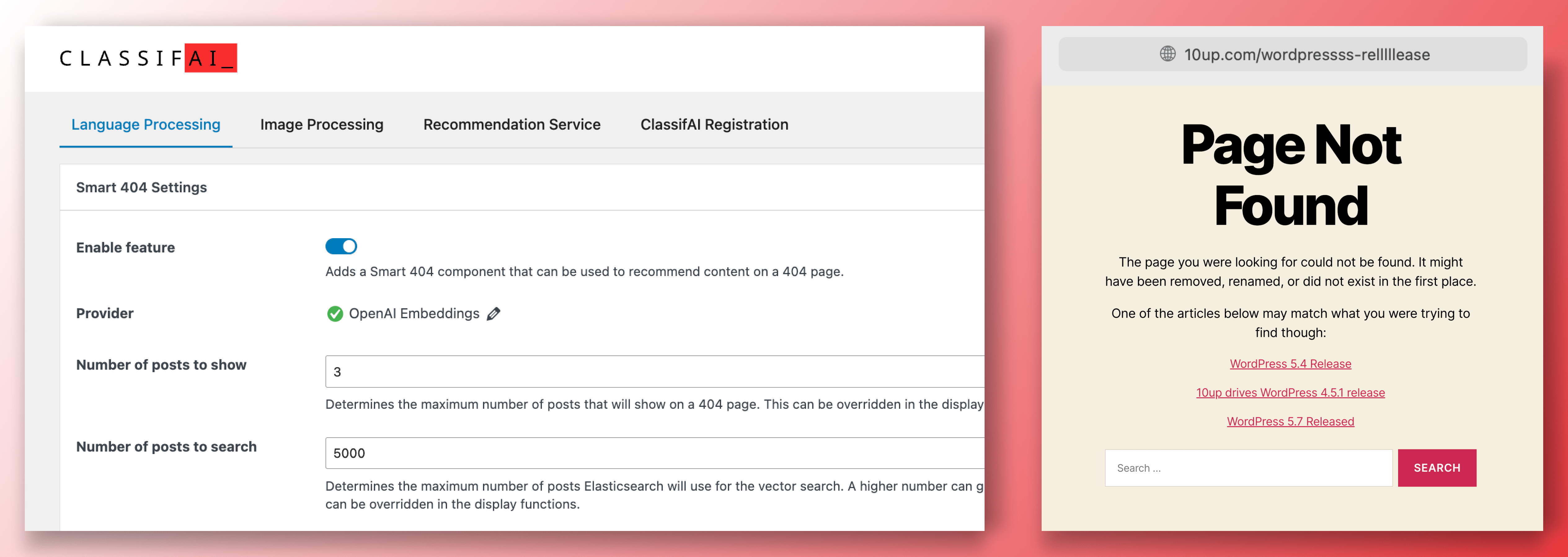 PMC and 10up identified an opportunity to significantly improve user experience and SEO performance on error pages—specifically, the ubiquitous but typically neglected 404 pages. Recognizing that traditional 404 pages frequently provided poor user experiences and were a top source of “bounced” visitors, PMC envisioned a smarter, more contextual approach. Leveraging ClassifAI, the teams implemented a solution using OpenAI’s semantic embeddings technology: