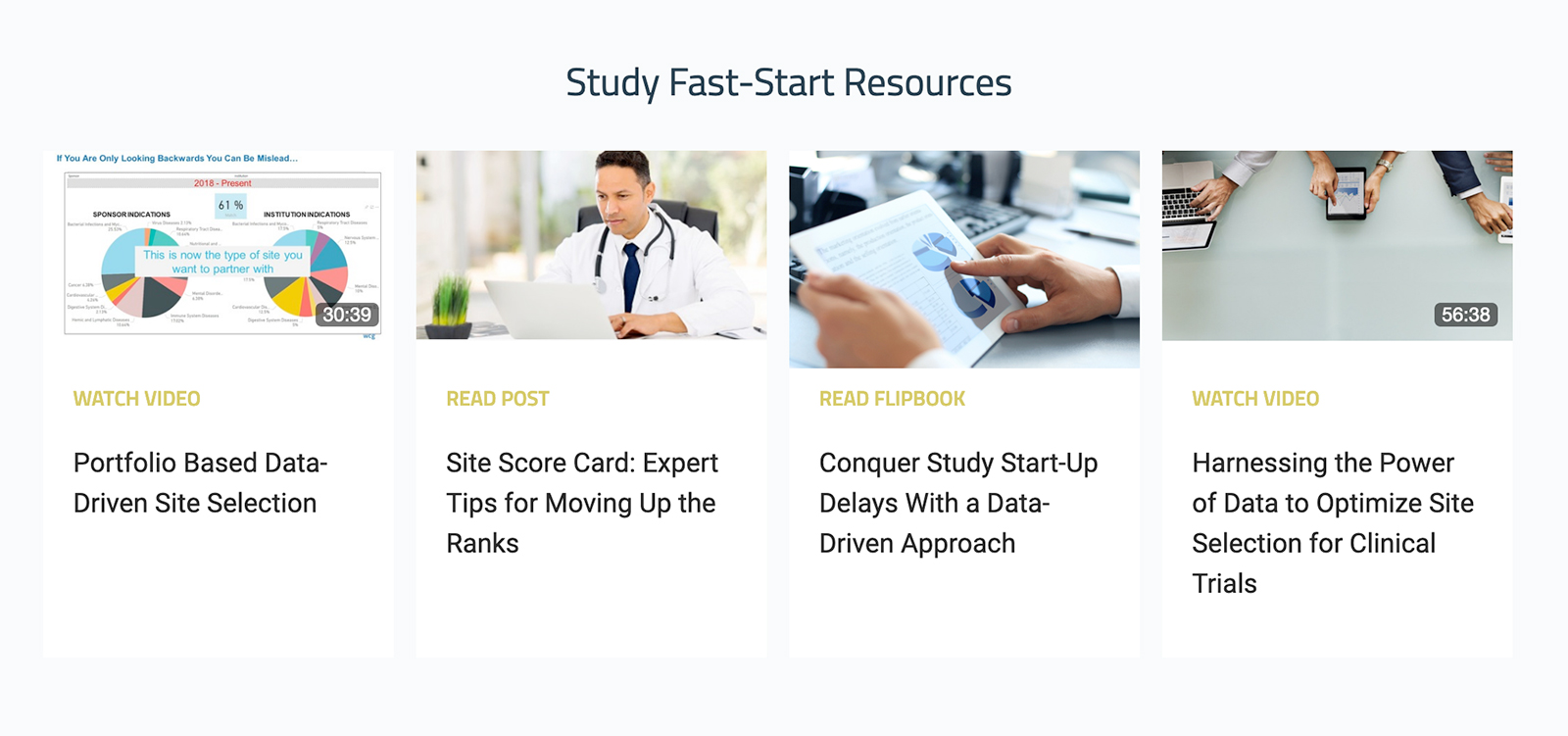 10up also wrote a custom external-content block to pull the Uberflip titles into WordPress. WCG editors could then select from these titles to display in a Resources box at the main WordPress site (see the Study Fast-Start landing page).
